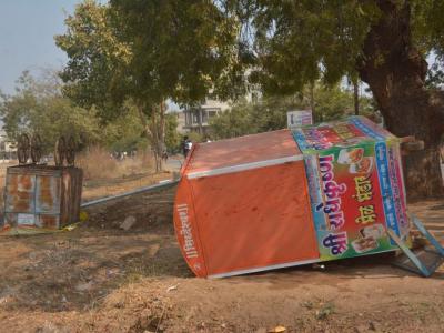 आंदोलकांनी बंद असलेल्या हॉटेलमधील टेबल, खुच्र्यांची तोडफोड केली.