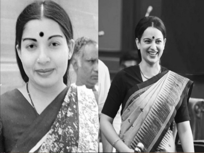 बॉलीवुडची क्वीन म्हणजे कंगणा राणौत गेल्या काही महिन्यांपासून तिचा आगामी सिनेमा 'थलायवी'च्या सिनेमामुळे चर्चेत आहे.'थलायवी'च्या शूटिंगसेटवरचे काही फोटो शेअर केले आहेत. यात हुबेहुब जयललिता यांच्या लूकप्रमाणेच तिचा लूक करण्यात आला आहे. पाहा जयललिता यांच ...