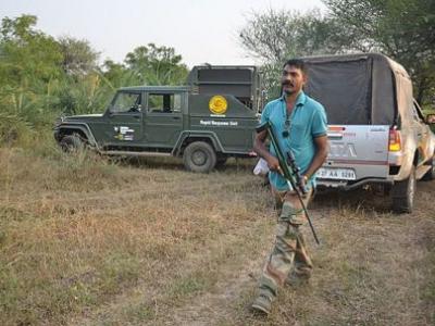 शार्प शूटरचे जागते रहो. त्यांच्याकडील गन ट्रँक्यूलायझरने सज्ज असून, वाघाची प्रतीक्षा होत आहे.
