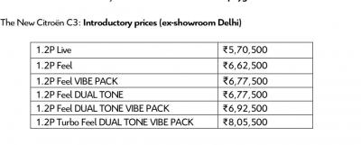 सिट्रॉएन सी 3 कार दोन ट्रिम लेव्हल, १० एक्सटीरिअर पेंट स्कीम आणइ ५६ प्रकारची कस्टमाझेशनमध्ये मिळणार आहे. Citroen C3 ही सब कॉम्पॅक्ट एसयुव्ही आहे. परंतू कंपनी या कारची प्रसिद्धी ट्विस्टसोबतची हॅचबॅक अशी करत आहे.