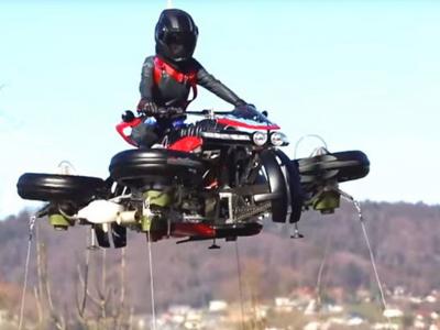 फ्रान्सची कस्टम ऑटोमोबाईल कंपनी lazareth ने ही हवेत उडू शकणारी मोटारसायकल बनविली आहे.