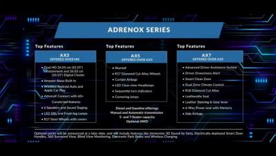 विशेष म्हणजे कंपनी इन्फोटेन्मेंट सिस्टममध्ये ब्रँड न्यू AdrenoX इंटरफेस देत आहे, जो बिल्टइन अॅलेक्सा व्हर्च्युअल असिस्टंटसह येतो.