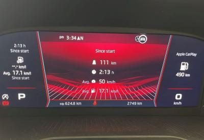 मायलेज तर टेस्ट करणारच ना, भारतीय जे आहोत. आम्ही जी चालविली ती स्कोडा कुशाक माँटे कार्लो एडिशन होती, ८ स्पीड अॅटोमॅटीक गिअरबॉक्स असलेली. शहरात १०-१२ चे मायलेज कारने दिले. पिकअपचा तर प्रश्नच आला नाही. हायवेवर कारने पार अगदी १९-२१ चे मायलेज देत ८ स्पीडची खरी गंमत दाखवून दिली. असे नाही की आम्ही गाडी पळविली. पुणे-कोल्हापूर हायवेचा ८० किमीचा नियम पाळत आम्ही गाडी ७०-७५ च्या वेगाने चालवत होतो. रस्ता बराचसा मोकळा असल्याने क्रूझ कंट्रोलही काही काळ ७५ वर सेट केला होता. पुढे चढ उतार, डोंगररांगा यात १४-१५ पर्यंत मायलेज आले होते. महत्वाचे म्हणजे ७० च्या स्पीडनंतर सातवा, आठवा गिअर चालत होता.