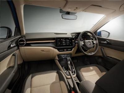 एक्सटीरिअर लुक आणि स्टाइल- एक्सटीरिअर लुक आणि स्टाइलिंगच्या बाबतीत या स्कोडा सेडानला ब्रँडची सिग्नेचर बटरफ्लाय ग्रिल आणि L-आकाराचे DRL सह स्लीक हेडलॅम्प आणि उलटे L-आकाराचे मोटिफ असलेले फॉग लॅम्प्स मिळतात. याशिवाय, टेललँपपर्यंत ठळक रेषा दिसून येते. साइड प्रोफाईल 16-इंच ड्युअल-टोन अलॉय व्हील (केवळ टॉप-एंड ट्रिमसाठी) आणि विंडो लाईनभोवती क्रोम ट्रिमसह डिझान केलेले आहे. कारच्या मागील बाजूस C-आकाराचे LED टेललॅम्प आणि क्रोम स्ट्रिपसह बंपर आहेत.