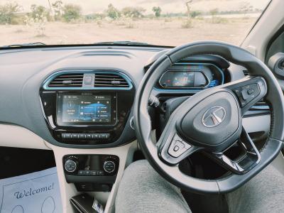 टियागोमधील सीट या आरामदायी आहेत. परंतू, मागच्या सीटवर तुम्हाला दोन मोठे व्यक्ती बसू शकतील एवढीच जागा आहे. म्हणजे ही छोट्या फॅमिलीसाठी किंवा रोजच्या वापरासाठीची कार आहे. आकाराला छोटी असल्याने ही कार शहरात किंवा इंटरसिटी प्रवासासाठी एकदम उपयुक्त आहे. एसी देखील केबिन चांगल्याप्रकारे कुल करत होता. सध्या पावसाळा आहे परंतू पाऊस नाहीय, यामुळे आम्ही २१-२२ वर एसी ठेवून कार चालवत होतो. त्याचाही थोडाफार रेंजवर परिणाम झाला.