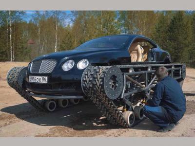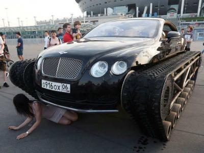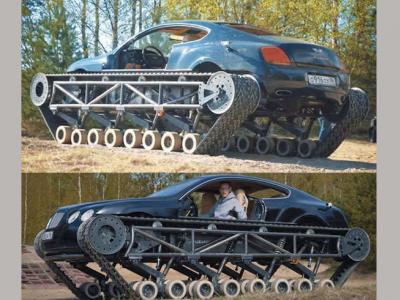 एका महाभागाने बेंटलीच्या कॉन्टिनेंटल जीटी या तब्बल तीन कोटींच्या कारला रणगाड्याची चाके लावली आहेत.