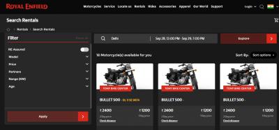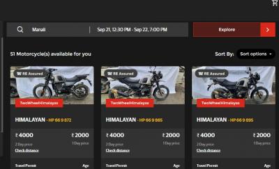 याठिकाणी आम्ही दिल्ली शहर निवडले आणि नियोजित तारखेनुसार रॉयल एनफील्ड बुलेट दररोज १२०० रुपये भाड्याने उपलब्ध असल्याचे सांगण्यात आले. याशिवाय रॉयल एनफिल्ड हिमालयनचे भाडे १५३३ रुपये प्रतिदिन होते.