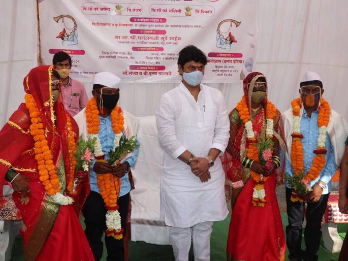 1 / 8एचआयव्ही (HIV) बाधित परिवारातील अनाथ मुला-मुलींच्या दोन जोडप्यांच्या अनोखा विवाह सोहळा राज्याचे सामाजिक न्यायमंत्री धनंजय मुंडे यांच्या प्रमुख उपस्थितीत बीड तालुक्यातील पाली येथील आनंदग्राम येथे संपन्न झाला. 2 / 8कोणत्याही धार्मिक पद्धतीचा वापर न करता नवरा-नवरींनी एकेमेकांना हार घालत वंदे मातरम या गीताचे गायन केले व विवाह संपन्न झाला! आपल्या आयुष्यात अनेक विवाहसोहळे आपण पाहिले, सामुदायिक विवाह सोहळे आयोजित केले, परंतु या अनोख्या विवाह सोहळ्यास उपस्थित राहता आले हे माझं भाग्यच असल्याचे आमदार धनंजय मुंडे म्हणाले.3 / 8बीड शहरापासून जवळच असलेल्या पाली येथील इंफन्ट इंडिया (आनंदग्राम) या एचआयव्ही ग्रस्त मुलांच्या संगोपन केंद्रास राष्ट्रीय महामार्गापासून जोडणाऱ्या रस्त्याच्या सिमेंट काँक्रीटीकरणसाठी जिल्ह्याचे पालकमंत्री धनंजय मुंडे यांनी जिल्हा नियोजन समितीतून ५० लाख रुपये मंजूर केले असून, पावसाळा सुरू होण्याच्या आत या रस्त्याचे काम पूर्ण करण्यात येईल असेही धनंजय मुंडे यांनी म्हटले आहे.4 / 8एचआयव्ही बाधित दाम्पत्याची पण पूर्णपणे सक्षम असलेल्या शिवकन्या या चिमुकलीचा पहिला वाढदिवस धनंजय मुंडे यांच्या हस्ते करण्यात आला.5 / 8धनंजय मुंडे यांनी शिवकन्येला केक भरवून तिचा वाढदिवस यावेळी साजरा केला.6 / 8धनंजय मुंडे या कार्यक्रमाला उपस्थित राहून भारावून गेले होते.7 / 8संस्थेचे संचालक श्री. दत्ता बारगजे व सौ. संध्याताई बारगजे यांनी स्व. डॉ. बाबा आमटे यांच्या प्रेरणेतून एचआयव्ही बाधितांची सेवा करण्याचे, त्यांना सक्षम करून समाजात सन्मानाने जीवन जगण्याची संधी निर्माण करण्याचे सेवाव्रत हाती घेतले आहे, हे अत्यंत महान कार्य असून, आनंदग्राम ही संस्था आजपर्यंतच्या शासकांकडून दुर्लक्षित राहणे हे अनाकलनीय व दुर्दैवी असल्याचेही मुंडे म्हणाले.8 / 8संस्थेच्या वतीने विवाह सोहळा व संपूर्ण कार्यक्रमादरम्यान कोविड विषयक नियमांचे काटेकोरपणे पालन केलेले दिसून आले.