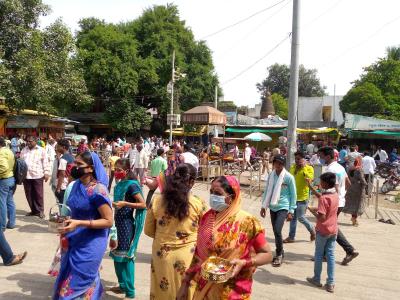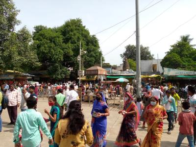 सध्या जिल्ह्यात लागू असलेल्या कोरोना निर्बंधांमुळे पहिल्या श्रावण सोमवारी फारसी गर्दी नव्हती.