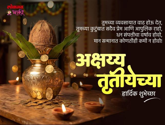 तुमच्या घरात धन-संपत्तीचा वर्षाव होवो, माता लक्ष्मी सदैव प्रसन्न राहो, प्रेम बंधुभाव वाढो, विश्वात एकात्मता कायम राहो! तुम्हाला आणि तुमच्या परिवाराला अक्षय्य तृतीयेच्या हार्दिक शुभेच्छा!