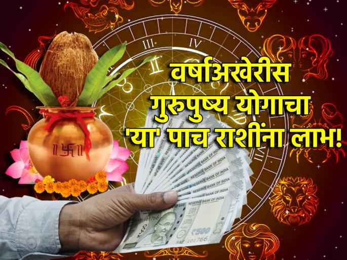 1 / 6२९ डिसेंबर रोजी नवीन वर्षाच्या सुरुवातीला गुरु पुष्य योग तयार होत आहे. या शुभ योगाच्या प्रभावामुळे हे वर्ष अनेक राशींना समृद्ध करेल. गुरु पुष्य योगाव्यतिरिक्त आदित्य मंगल राजयोग देखील वर्षाच्या शेवटी धनु राशीत सूर्य आणि मंगळाच्या संयोगामुळे तयार होत आहे. यासोबतच गुरु ग्रह प्रत्यक्ष मेष राशीत असल्यामुळे गजकेसरी योगही तयार होत आहे. या सर्व शुभ योगांच्या प्रभावामुळे वृषभ आणि सिंह राशीसह ५ राशींना वर्षाच्या शेवटी आर्थिक लाभ होण्याची दाट शक्यता आहे. नवीन वर्षाच्या सुरुवातीला या ५ राशींना भरघोस उत्पन्न मिळेल आणि करिअरमध्ये प्रगती होईल.2 / 6गुरु पुष्य योगाच्या शुभ प्रभावामुळे वर्षाच्या शेवटी तुम्हाला व्यवसायात भरघोस नफा मिळेल. नोकरदारांना उत्पन्नाचे इतर स्रोतही मिळतील. वर्षाच्या शेवटी तुम्हाला उपयोगी पडतील अशा लोकांशी तुमची भेट होऊ शकते. जर तुम्ही तुमच्या घरासाठी काही वस्तू किंवा सोने-चांदी खरेदी करण्याचा विचार करत असाल, तर तुमच्यासाठी हा सर्वोत्तम काळ असेल. गुंतवणुकीच्या बाबतीतही तुम्हाला मोठे फायदे मिळतील.3 / 6मिथुन राशीच्या लोकांना गुरु पुष्य योगाच्या शुभ प्रभावामुळे वर्षाच्या शेवटी धनाच्या बाबतीत प्रचंड लाभ होईल. नोकरी तसेच व्यवसाय किंवा तुमच्या उत्पन्नाच्या बाबतीत चांगली संधी मिळेल आणि तुम्हाला नशिबाची पूर्ण साथ मिळेल. जे अविवाहित आहेत त्यांच्यासाठी या वर्षाचा शेवट काही चांगल्या बातमीने होईल. ऑफिसमध्येही पदोन्नती, पगारवाढीची शक्यता आहे. 4 / 6सिंह राशीच्या लोकांसाठी, गुरु पुष्य योग वर्षाच्या शेवटी भाग्योदय करणारा ठरेल आणि तुम्हाला व्यवसायात चांगला नफा मिळेल. तुमची आर्थिक स्थिती उत्तम होईल आणि व्यवसायात आर्थिक फायदा होईल. जे लोक दीर्घकाळ आजारी होते, त्यांची प्रकृती पूर्वीपेक्षा चांगली असेल. यावेळी पैसे गुंतवल्यास नवीन वर्षात तुम्हाला चांगली परतफेड मिळू शकते. व्यवसायात आर्थिक लाभ होण्याची शक्यता आहे.5 / 6गुरु पुष्य योगाच्या प्रभावामुळे कन्या राशीच्या लोकांसाठी वर्षाचा शेवटचा काळ खूप छान असणार आहे. ऑफिसच्या कामात तुम्हाला काही मोठी जबाबदारी मिळू शकते आणि बॉस तुमच्यावर खूप खुश असतील. तुम्हाला तुमच्या सहकाऱ्यांचेही पूर्ण सहकार्य मिळेल आणि सर्वजण तुमच्या कामाची प्रशंसा करतील. आर्थिक लाभाच्या दृष्टीनेही हा काळ तुमच्यासाठी चांगला आहे. कमी गुंतवणुकीत तुम्हाला चांगला नफा मिळेल. संततीकडून आनंदवार्ता समजतील. 6 / 6तूळ राशीतील मालव्य राजयोग या राशीच्या लोकांना आर्थिक लाभ देईल आणि गुरु पुष्य योगाच्या प्रभावामुळे या राशीच्या लोकांना वर्षाच्या शेवटी थकबाकीत राहिलेला पैसा मिळू शकतो. नोकरी व्यवसायात या काळात काही चांगली बातमी मिळू शकत