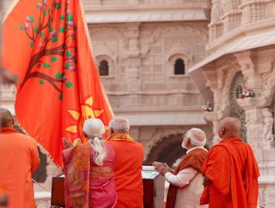 ५०० वर्षांच्या संघर्षानंतर मंदिराचे पूर्णत्व साजरे करण्यासाठी हा क्षण निवडला गेला. पंतप्रधान नरेंद्र मोदी आज १६१ फूट उंच शिखरावर २२ फूट लांब आणि ११ फूट रुंद भगवा ध्वज फडकवला. प्राचीन काळी प्रत्येक देवालयात धर्मध्वज अनिवार्य असायचा. ५०० वर्षांच्या संघर्षानंतर पुन्हा अयोध्येत ही परंपरा जिवंत झाली, ही भारतीय संस्कृतीची पुनर्प्राप्ती आहे.