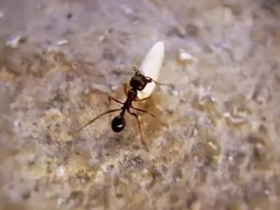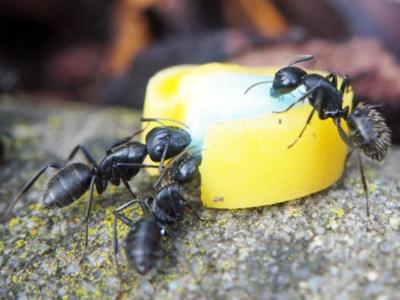 काळ्या मुंग्या पदार्थ खाताना दिसणे