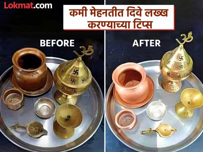 1 / 5दिव्यांची आवस आहे म्हटल्यावर सर्व दिवे स्वच्छ करणे ओघाने आलेच. परंतु समई, निरांजन, पणतीवर जमलेली काजळी आणि तेला-तुपाची चढलेली पुटं पाहून ते स्वच्छ करण्याआधीच आपला उत्साह मावळतो. पूर्वी आपल्या आई, आजी चिंचेचा कोळ घेऊन देवाची उपकरणी स्वच्छ करत असत. मात्र अलीकडे त्यासाठी पावडर, लिक्विड सोप बाजारात उपलब्ध आहेत. परंतु त्यांचा वापर करून दिव्यांना चकाकी आणता येईल, मात्र तेलकट-तुपकट दिव्यांची स्वच्छता करणे ही प्राथमिक पायरी टाळता येणार नाही. त्यासाठी कमी कष्टात दिवे स्वच्छ करण्याच्या काही टिप्स आवर्जून वापरून पहा.2 / 5चांदीचे दिवे किंवा मूर्ती उजळण्यासाठी बाजारात एक महागडे लिक्विड मिळते. त्याचा वापर सोपा आहेच, पण त्याहीपेक्षा सोपा उपाय आपल्या घरात आहे, तो म्हणजे दात घासण्यासाठी वापरतो ती टूथपेस्ट किंवा पांढरी टूथ पावडर. तुम्हाला आश्चर्य वाटेल पण ही पावडर वापरून तुम्ही चांदीच्या काळवंडलेल्या कोणत्याही वस्तूंना नवीन झळाळी देऊ शकता. प्रश्न राहिला चांदीची समई किंवा निरंजनाचा? तर त्यावरही हा प्रयोग यशस्वी होतो. फक्त त्याआधी साध्या डिश वॉश लिक्विड सोप ने निरांजन, समई धुवून घ्यावी त्यामुळे त्याचा तेलकट-तुपकटपणा निघून जाईल व नंतर त्यावर पेस्ट किंवा पावडरचा वापर केल्यामुळे ते दिवे चकचकीत होतील.3 / 5तांब्याचे दिवे, समई स्वच्छ करण्यासाठी अर्धी वाटी कणिक (गव्हाचे पीठ), चार चमचे मीठ आणि व्हिनेगर एकत्र करून ती पेस्ट दिव्यांवर किंवा तांब्याच्या मूर्तीवर व्यवस्थित लावून घ्या. साधारण पंधरा मिनिटे दिवे त्याच स्थितीत ठेवा. नंतर एक ब्रश घेऊन पेस्ट लावलेले दिवे नीट घासून घ्या. दुसऱ्या भांड्यात गरम पाणी घेऊन त्यात दिवे ठेवा आणि दहा मिनिटानंतर स्वच्छ पाण्याने दिवे धुवून घ्या. कितीही काळे पडलेले दिवे असोत, ते लखलखणारच!4 / 5अनेक घरांमध्ये पितळी निरांजन, समई असते. ती स्वच्छ केल्यावर सोन्यासारखी लखाकते. परंतु त्यावर काजळी चढली आणि तेला तुपाची पुटं चढली की ती स्वच्छ करणे जिकिरीचे होऊन बसते. यावर सोपा उपाय म्हणजे एक मोठे पातेले घ्या. त्यात दिवे बुडतील एवढे पाणी घ्या. त्यात दोन चमचे साबणाची पावडर आणि दोन चमचे खाण्याचा सोडा घाला. वरून अर्धा लिंबू पिळून घ्या. पंधरा मिनिटे ते पातेले गॅसवर ठेवून पाणी चांगले उकळू द्या. पंधरा मिनिटानंतर पाण्याच्या वर तेला-तुपाचा थर आणि काजळी जमा झालेली दिसेल आणि त्या काळ्या पाण्याच्या आत स्वच्छ झालेले 'ऑइल फ्री' दिवे दिसतील. गॅस बंद करून दिवे बाहेर काढून चांगल्या पाण्याने धुवून घ्या. त्यांना चकाकी यावी म्हणून बाजारात मिळणारी दिवे स्वच्छ करण्याची पावडर लावून घ्या. साध्या पाण्याने धुवून पुसून घ्या. हे दिवे बाजारातून खरेदी केलेल्या नव्या दिव्यांसार