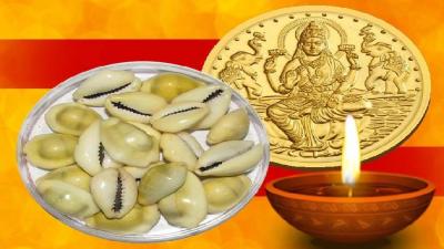 पिवळ्या कवड्या: दीपावली पूजनावेळी माता लक्ष्मीला पूजेमध्ये ११ कवड्या अर्पण करा. पुढच्या दिवशी लाल कापडामध्ये त्या पिवळ्या कवड्या बांधून गल्ला किंवा तिजोरीत ठेवा. त्यामुळे धनाची वृद्धी होईल.