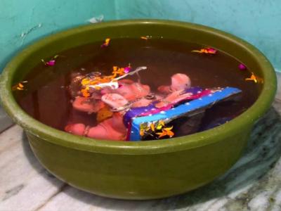 वाहत्या पाण्यात मूर्ती सोडून देणे-