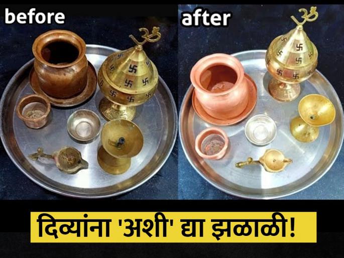 1 / 5चांदीचे दिवे किंवा मूर्ती उजळण्यासाठी बाजारात एक महागडे लिक्विड मिळते. त्याचा वापर सोपा आहेच, पण त्याहीपेक्षा सोपा उपाय आपल्या घरात आहे, तो म्हणजे दात घासण्यासाठी वापरतो ती टूथपेस्ट किंवा पांढरी टूथ पावडर. तुम्हाला आश्चर्य वाटेल पण ही पावडर वापरून तुम्ही चांदीच्या काळवंडलेल्या कोणत्याही वस्तूंना नवीन झळाळी देऊ शकता. प्रश्न राहिला चांदीची समई किंवा निरंजनाचा? तर त्यावरही हा प्रयोग यशस्वी होतो. फक्त त्याआधी साध्या डिश वॉश लिक्विड सोप ने निरांजन, समई धुवून घ्यावी त्यामुळे त्याचा तेलकट-तुपकटपणा निघून जाईल व नंतर त्यावर पेस्ट किंवा पावडरचा वापर केल्यामुळे ते दिवे चकचकीत होतील.2 / 5मात्र अलीकडे त्यासाठी पावडर, लिक्विड सोप बाजारात उपलब्ध आहेत. परंतु त्यांचा वापर करून दिव्यांना चकाकी आणता येईल, मात्र तेलकट-तुपकट दिव्यांची स्वच्छता करणे ही प्राथमिक पायरी टाळता येणार नाही. त्यासाठी कमी कष्टात दिवे स्वच्छ करण्याच्या काही टिप्स आवर्जून वापरून पहा.3 / 5तांब्याचे दिवे, समई स्वच्छ करण्यासाठी अर्धी वाटी कणिक (गव्हाचे पीठ), चार चमचे मीठ आणि व्हिनेगर एकत्र करून ती पेस्ट दिव्यांवर किंवा तांब्याच्या मूर्तीवर व्यवस्थित लावून घ्या. साधारण पंधरा मिनिटे दिवे त्याच स्थितीत ठेवा. नंतर एक ब्रश घेऊन पेस्ट लावलेले दिवे नीट घासून घ्या. दुसऱ्या भांड्यात गरम पाणी घेऊन त्यात दिवे ठेवा आणि दहा मिनिटानंतर स्वच्छ पाण्याने दिवे धुवून घ्या. कितीही काळे पडलेले दिवे असोत, ते लखलखणारच!4 / 5अनेक घरांमध्ये पितळी निरांजन, समई असते. ती स्वच्छ केल्यावर सोन्यासारखी लखाकते. परंतु त्यावर काजळी चढली आणि तेला तुपाची पुटं चढली की ती स्वच्छ करणे जिकिरीचे होऊन बसते. यावर सोपा उपाय म्हणजे एक मोठे पातेले घ्या. त्यात दिवे बुडतील एवढे पाणी घ्या. त्यात दोन चमचे साबणाची पावडर आणि दोन चमचे खाण्याचा सोडा घाला. वरून अर्धा लिंबू पिळून घ्या. पंधरा मिनिटे ते पातेले गॅसवर ठेवून पाणी चांगले उकळू द्या. पंधरा मिनिटानंतर पाण्याच्या वर तेला-तुपाचा थर आणि काजळी जमा झालेली दिसेल आणि त्या काळ्या पाण्याच्या आत स्वच्छ झालेले 'ऑइल फ्री' दिवे दिसतील. गॅस बंद करून दिवे बाहेर काढून चांगल्या पाण्याने धुवून घ्या. त्यांना चकाकी यावी म्हणून बाजारात मिळणारी दिवे स्वच्छ करण्याची पावडर लावून घ्या. साध्या पाण्याने धुवून पुसून घ्या. हे दिवे बाजारातून खरेदी केलेल्या नव्या दिव्यांसारखे लखाकतील.5 / 5दिवाळीनंतर वातीसकट तशाच ठेवून दिलेल्या पणत्या काळवंडून जातात. दीप अमावस्येला ते दिवेही लावणार असाल, तर सर्व पणत्यांमधील वाती काढून घ्या. एक पातेले घेऊन त्यात पणत्या बुडतील एवढे गरम पाणी घ्या. त्या पाण्यात डिश वॉश लिक्विड सोप दोन चमचे