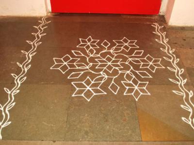 ज्या घरासमोर, दारासमोर, अंगणात, तुळशीजवळ रांगोळी काढलेली असते, त्या वास्तूवर देवी लक्ष्मीचा वरदहस्त कायम असतो. कारण हीच देवीची प्रवेश द्वारं आहेत. तसेच रांगोळी ही नकारात्मक ऊर्जा नष्ट करते. बाहेरून येणाऱ्या व्यक्तीची भावना वाईट असेल तरी रांगोळी पाहून त्याचे विकार नष्ट होतात. थकून भागून आलेली व्यक्ती नक्षीदार रांगोळी पाहून प्रसन्न होते. अर्धा शीण दूर होतो. घरातल्या लोकांवर सकारात्मक परिणाम होतो.