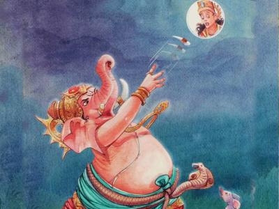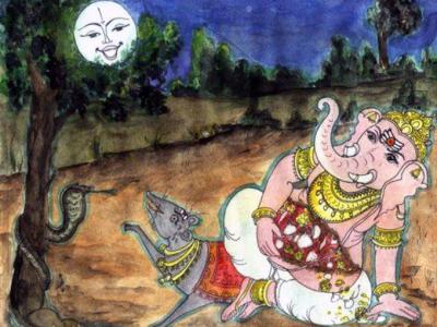 बालगणेशाच्या त्या रुपाला पाहून चंद्राला आपले हसू आवरले नाही आणि तो जोरजोराने हसू लागला. चंद्राचे उपहासाने हसणे गणपतीला रुचले नाही. त्यांनी याबद्दल चंद्राला जाब विचारला. मात्र, चंद्राचे हसणे थांबले नाही. शेवटी गणपतीला राग अनावर झाला. चंद्रदेव, तुम्हाला तुमच्या रुपावर फार गर्व आणि अहंकार आहे ना. यापुढे तुमचे तोंड कोणीही पाहणार नाही.