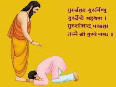 संस्कृत मध्ये `गु' शब्दाचा अर्थ आहे अंधकार आणि `रु' शब्दाचा अर्थ आहे प्रकाश. म्हणजेच जी व्यक्ती आपल्या आयुष्यात अज्ञानाचा अंधकार दूर करून ज्ञानाचा प्रकाश देते, तिलाच गुरु म्हणावे. त्या ज्ञानाचे, प्रामाणिकपणाचे, आत्मविश्वासाचे तेज गुरुंच्या चेहऱ्यावर दिसून येते व तेच तेज गुरुंकडून शिष्याला प्राप्त होते.