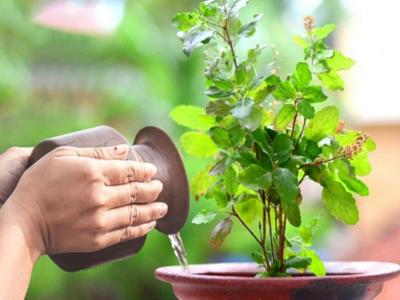 २. तुळशीला हळद मिश्रित जल अर्पण करा
