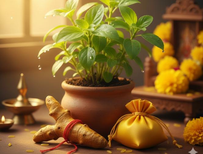 तुळशीच्या रोपात साक्षात माता लक्ष्मीचा वास असतो, तर हळदीचा संबंध भगवान विष्णूंशी असतो. त्यामुळे या दोघांचा संगम लक्ष्मी-नारायण कृपेसाठी सर्वात उत्तम मानला जातो. यासाठी गुरुवारी लवकर उठून स्नान करा. विष्णू आणि लक्ष्मीची पूजा करा. त्यानंतर एका तांब्यात किंवा कलशात शुद्ध जल घेऊन त्यात चिमूटभर हळद मिसळा. हे हळदीचे पाणी तुळशीच्या रोपाला अर्पण करा. हा उपाय नियमितपणे केल्यास धन-दौलतीत वाढ होते आणि घरात लक्ष्मी मातेची कृपा कायम राहते.