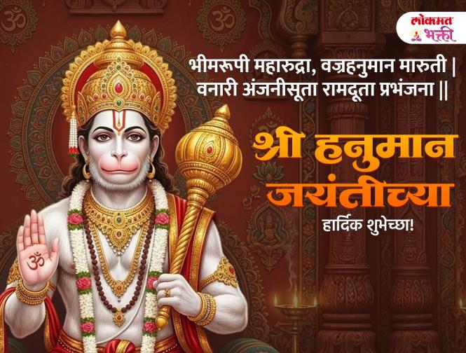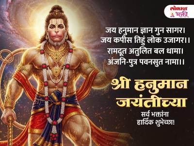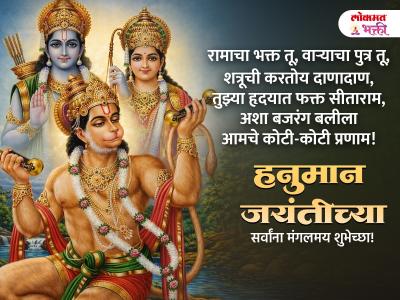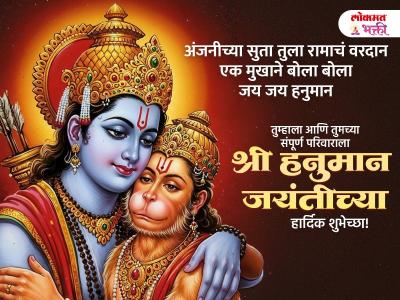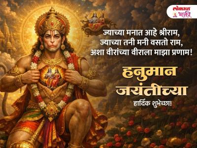 Hanuman Jayanti Wishes in Marathi: चैत्र पौर्णिमेच्या मंगल मुहूर्तावर अवतरलेल्या महाबली हनुमानाच्या जन्मोत्सवानिमित्त (Hanuman Jayanti 2026 Wishes) आम्ही खास शुभेच्छा संदेश घेऊन आलो आहोत, जे तुमच्या दिवसात सकारात्मक ऊर्जा भरतील. मारुतीरायाचा हा भक्तीचा गजर आणि आशीर्वाद सर्वांपर्यंत पोहोचवण्यासाठी हे संदेश आपल्या मित्र-परिवाराला आवर्जून शेअर करा. तुमच्या व्हॉट्सॲप स्टेटसवर हे संदेश ठेवून आणि प्रियजनांना पाठवून हनुमान जन्मोत्सवाचा उत्साह द्विगुणित करा.