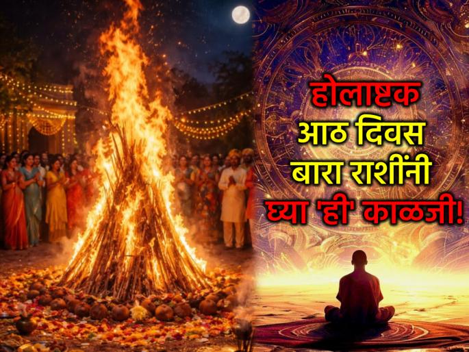 1 / 13पौराणिक कथेनुसार, भक्त प्रल्हादाला विष्णू भक्तीपासून दूर करण्यासाठी त्याचे वडील हिरण्यकश्यपूने या आठ दिवसांत अनन्वित छळ केला होता. मात्र, प्रल्हादाच्या अढळ श्रद्धेमुळे त्याचे रक्षण झाले. म्हणूनच हा काळ भौतिक सुखांपेक्षा आध्यात्मिक शक्ती वाढवण्यासाठी आणि स्वतःच्या मनावर ताबा मिळवण्यासाठी अत्यंत महत्त्वाचा मानला जातो. या काळात १२ राशींनी नेमकी काय काळजी घ्यावी आणि कोणते छोटे उपाय करावेत, ते जाणून घ्या. 2 / 13१. मेष (Aries) : मेष राशीच्या व्यक्तींनी या काळात आपल्या रागावर नियंत्रण ठेवणे अत्यंत आवश्यक आहे. ग्रहांच्या उग्रतेमुळे विनाकारण वादाचे प्रसंग निर्माण होऊ शकतात, ज्यामुळे मानसिक तणाव वाढेल. कोणताही मोठा आर्थिक निर्णय किंवा गुंतवणुकीचा विचार सध्या लांबणीवर टाका. आरोग्याकडे दुर्लक्ष करू नका, विशेषतः डोकेदुखी किंवा उष्णतेचे विकार सतावू शकतात. दररोज 'हनुमान चालीसा'चे पठण करणे तुमच्यासाठी संरक्षक कवच ठरेल.3 / 13२. वृषभ (Taurus) : वृषभ राशीच्या लोकांसाठी होलाष्टक संमिश्र फळ देणारे असेल, तरीही खर्चावर लगाम घालणे गरजेचे आहे. कौटुंबिक बाबींमध्ये इतरांचे मत जाणून घेतल्याशिवाय कोणताही निर्णय घेऊ नका. कामाच्या ठिकाणी सहकाऱ्यांशी मतभेद होण्याची शक्यता आहे, त्यामुळे बोलताना संयम ठेवा. घराबाहेर पडताना मोठ्यांचा आशीर्वाद घेऊनच निघा. 'महालक्ष्मी अष्टक' वाचल्याने मनातील भीती दूर होऊन स्थिरता प्राप्त होईल.4 / 13३. मिथुन (Gemini) : मिथुन राशीच्या व्यक्तींनी या काळात आपल्या बोलण्यावर (वाणीवर) नियंत्रण ठेवावे. चुकीच्या शब्दामुळे जवळचे नाते दुरावण्याची शक्यता निर्माण होऊ शकते. प्रवासात सावधगिरी बाळगा आणि अनोळखी व्यक्तीवर लगेच विश्वास ठेवू नका. विद्यार्थ्यांनी अभ्यासात एकाग्रता टिकवण्यासाठी दररोज १० मिनिटे ध्यान (Meditation) करावे. भगवान विष्णूच्या 'ओम नमो भगवते वासुदेवाय' या मंत्राचा जप करणे लाभदायक ठरेल.5 / 13४. कर्क (Cancer) :कर्क राशीचा स्वामी चंद्र असल्यामुळे या काळात तुम्हाला मानसिक अस्वस्थता किंवा नकारात्मक विचार सतावू शकतात. किरकोळ कारणावरून रडू येणे किंवा एकटेपणा वाटणे असे अनुभव येऊ शकतात. या दिवसात घरामध्ये शांततेचे वातावरण ठेवा आणि वादाचे मुद्दे टाळा. आईच्या आरोग्याची विशेष काळजी घ्या. शिवाची उपासना करणे आणि शंकराच्या पिंडीवर दूध अर्पण करणे तुमच्या मानसिक शांतीसाठी सर्वोत्तम उपाय आहे.6 / 13५. सिंह (Leo) :सिंह राशीच्या व्यक्तींनी कामाच्या ठिकाणी अहंकार बाजूला ठेवून वागणे हिताचे ठरेल. घाईघाईत घेतलेला कोणताही निर्णय भविष्यात आर्थिक नुकसानीला कारणीभूत ठरू शकतो. जोडीदारासोबतचे संबंध टिकवण्यासाठी सामंजस्याने वागा. या काळात नवीन मालमत्ता किंवा वाहन खरेदीचा विचार करू नका. दररो