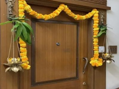 नवरात्रीचे दहा दिवस आपल्या वास्तूच्या मुख्य दारावर कुंकवाने स्वस्तिक रेखाटा. तसेच आम्रपल्लव आणि झेंडूचे तोरण लावा. ते शक्य नसेल तर आंब्याची डहाळी लावा. प्रवेश द्वारावरील या खुणा तुमच्या वास्तू मध्ये आनंद, चैतन्य आणि मांगल्य आणतील.