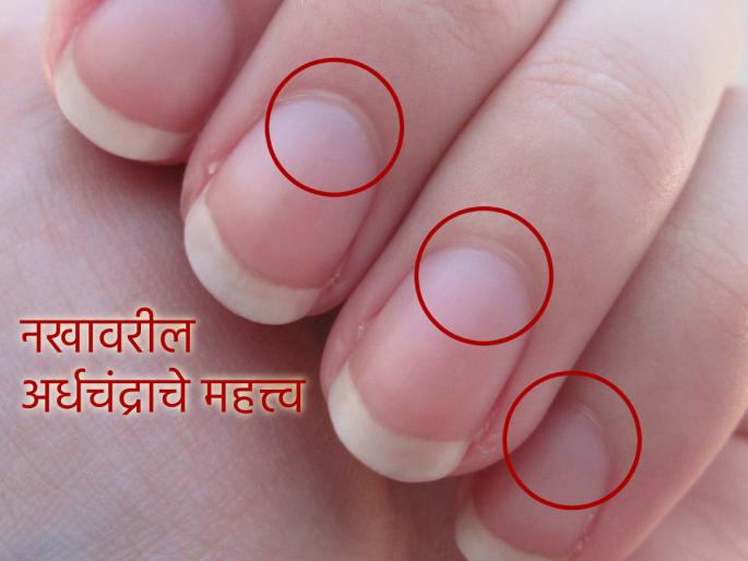 1 / 8सामुद्रिक शास्त्रानुसार, शरीराच्या अवयवांवर वेगवेगळ्या खुणा आपल्याला जीवनाशी संबंधित अनेक संकेत देतात. शरीरावरील तीळांपासून ते खुणापर्यंत प्रत्येक खुणेचे वेगळे महत्त्व असते. या खुणा येत जात असतात. चला त्याबद्दल सविस्तर जाणून घेऊ. 2 / 8जर तुमच्या तर्जनीच्या नखावर , म्हणजेच अंगठ्याच्या अगदी शेजारी असलेल्या बोटावर अर्धचंद्र असेल, तर ते खूप शुभ लक्षण मानले जाते. याचा अर्थ असा की तुम्हाला लवकरच नोकरीत यश मिळू शकते. नखावरील हा अर्धा चंद्र प्रगती दर्शवतो. या चिन्हाचा अर्थ असा की लवकरच तुम्हाला कुठूनतरी चांगली बातमी ऐकायला मिळेल.3 / 8हाताच्या मधल्या बोटाला मध्यमा म्हणतात. जर या बोटाच्या नखावर पांढरा अर्धचंद्राचा डाग असेल तर तो डाग तुमच्या सौभाग्याचा संकेत असू शकतो. अर्धचंद्र चिन्हाचा अर्थ असा आहे की तुम्हाला यंत्रांशी संबंधित कामात फायदा होईल. तसेच, हे चिन्ह आर्थिक लाभ दर्शवते. आहे. ज्या लोकांच्या मधल्या बोटाच्या नखावर अर्धचंद्राचे चिन्ह दिसते त्यांनाही चांगली बातमी मिळू शकते.4 / 8जर तुमच्या अनामिकेवर वरच्या बाजूला अर्धचंद्राचे चिन्ह असेल तर ते अत्यंत शुभ मानले जाते. करंगळीच्या बाजूच्या बोटाला अनामिका म्हटले जाते. यावर अर्धचंद्राची उपस्थिती दर्शविते की तुम्हाला येत्या आयुष्यात मान सन्मान मिळणार आहेत. तसेच भौतिक सुखांनी जीवन समृद्ध होणार आहे. 5 / 8हाताच्या सर्वात लहान बोटाला करंगळी म्हणतात. जर त्याच्या नखावर अर्धचंद्राचे चिन्ह असेल तर तुम्हाला जीवनात अनेक प्रकारचे फायदे मिळू शकतात. अशा लोकांना व्यवसायाशी संबंधित कामात फायदा मिळू शकतो. तसेच, ते आर्थिक नफा मिळतो.6 / 8जर अंगठ्याच्या नखाच्या तळाशी अर्धचंद्राचे चिन्ह असेल तर ते शुभ चिन्ह मानले पाहिजे. हे चिन्ह सौभाग्याचे संकेत देते. यामुळे तुमच्या आयुष्यात अनेक शुभ गोष्टी येऊ शकतात. तसेच, ते जीवनात प्रगती आणि समृद्धी दर्शवते.7 / 8असे मानले जाते की जर अर्धचंद्राचे चिन्ह बोटांच्या नखांच्या मुळाशी तयार झाले तर ते चांगले असते. तुम्ही याला प्रगतीचे सूचक मानू शकता. तर, तुमच्या नखांवरचे पांढरे डाग असतील तर ते आरोग्याबद्दल भाष्य करते. ज्या लोकांच्या बोटांच्या नखांवर पांढरे डाग असतात, त्यांनी त्यांच्या आरोग्याची विशेष काळजी घ्यावी. हे चिन्ह खराब आरोग्याचे लक्षण असू शकते.8 / 8बऱ्याच लोकांच्या नखांवर पांढरा अर्धचंद्राचा डाग असतो जो इतका मोठा असतो की तो अर्धे नख झाकून टाकतो. असे चिन्ह चांगले मानले जात नाही. मात्र जर अंगठ्यावर पांढरा डाग दिसला तर तो प्रेमाचे सूचक मानला जातो. याशिवाय, अंगठ्याच्या नखावर काळा डाग येणे हे भविष्यात होणाऱ्या काही बदलांचे लक्षण असू शकते.