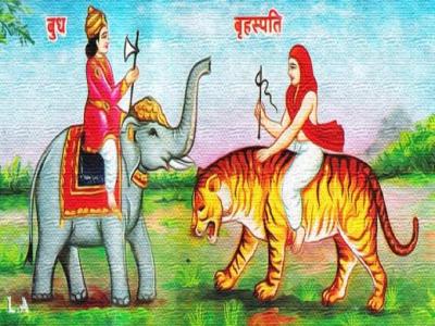 बुधाचे वाहन हत्ती. हत्ती हे उन्मत्ततेचे प्रतीक आहे. मानवी मनाला येणारी उन्मत्तात आपल्या बुद्धिमत्तेने, व्यक्तित्वाचा अंकुश, आवर घालावा, हे बुध प्रतिमेवरून लक्षात येते. बृहस्पतीचे वाहन वाघ. हे अहंकाराचा प्रतीक आहे. मानवी मनाला अहंकार लवकर चिटकतो. अहंकार मानवाच्या प्रगतीमध्ये, आध्यात्मिक साधनेत बाधक ठरतो.