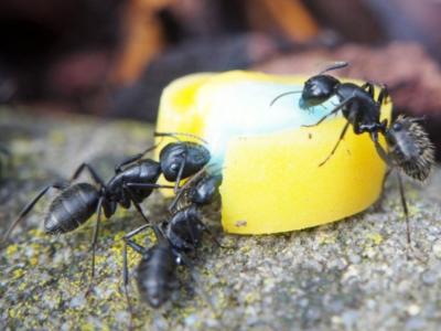 काळ्या मुंग्या पदार्थ खाताना दिसणे