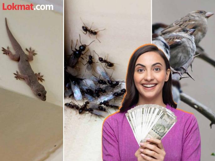 1 / 7काळ्या मुंग्या येणे हे सुबत्तेचे लक्षण मानले जाते. साखरेचा डबा घरात असूनही त्याला रोज मुंग्या लागत नाहीत, मात्र अचानक कधीतरी रेशनच्या दुकानाबाहेर रांग लागावी तशी साखरेच्या डब्याला मुंग्याची रांग लागलेली असते. ती शुभ आहे. वास्तुशास्त्र सांगते या मुंग्यांना गव्हाचे पीठ किंवा साखर घालावी, त्या तृप्त होऊन आपला मार्ग बदलतात. त्यांच्या आगमनाने घरात शुभ वार्ता येते.2 / 7तांदुळाच्या डब्याला काळ्या मुंग्या लागत असतील तर तेही शुभ लक्षण आहे असे वास्तू शास्त्र सांगते. आर्थिक परिस्थिती सुधारण्याचे ते चिन्ह आहे. अशा वेळी मुंग्यांना साखर घालावी.3 / 7साखरेला किंवा गुळाच्या ढेपेला मुंग्यांचे चिकटणे सामान्य आहे, परंतु एखादा खाद्यपदार्थ पडलेला असताना काळ्या मुंग्या त्याला चिकटलेल्या दिसल्या किंवा तो पदार्थ खाताना दिसल्या तर ते दृश्य शुभ मानले जाते. नोकरी, व्यवसाय, करिअरमध्ये प्रगती होते.4 / 7याउलट लाल मुंग्या दिसणे अशुभ मानले जाते. भांडणं, संकट, वित्त हानीचे ते लक्षण आहे. त्यांना उपाशी न मारता गव्हाचे पीठ खाऊ घालावे. पीठ खाऊन झाल्यावर मुंग्या फार काळ तिथे टिकत नाहीत व आपला मार्ग बदलतात.5 / 7मुंग्या कोणत्या बाजूने येतात हे पाहणेही महत्त्वाचे ठरते. पूर्वेकडून येणाऱ्या मुंग्या शुभ वार्ता आणतात, पश्चिमेकडून येणाऱ्या प्रवासाची सूचना देतात, दक्षिणेकडून येणाऱ्या आर्थिक बाजू भक्कम होण्याचे चिन्ह दर्शवतात तर उत्तर दिशेने येणाऱ्या आनंदाची चाहूल देतात.6 / 7घरात तीन पालींचे एकत्र दिसणे हे लक्ष्मी कृपेचे प्रतीक मानले जाते. पाल हा कीटक खाणारा प्राणी आपल्याला शिसारी आणणारा असला तरी तीन पालींचे एकत्र दिसणे वास्तू शास्त्रानुसार शुभ मानले जाते. 7 / 7आपल्या अंगणात, खिडकीत पाणी पिण्यासाठी, दाणे टिपण्यासाठी चिमण्या येतात, पण जेव्हा त्या रोजच्या सरावाने घरातही विश्वासाने बागडतात, तेव्हा त्यांची किलबिल वास्तू शास्त्रानुसार अतिशय शुभ मानली जाते. पैशांशी संबंधित शुभवार्ता कळू शकते.