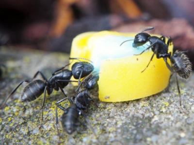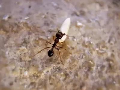 काळ्या मुंग्या पदार्थ खाताना दिसणे
