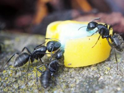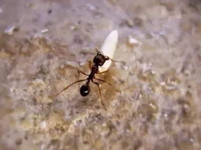 काळ्या मुंग्या पदार्थ खाताना दिसणे