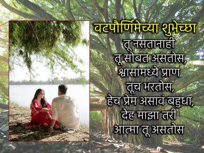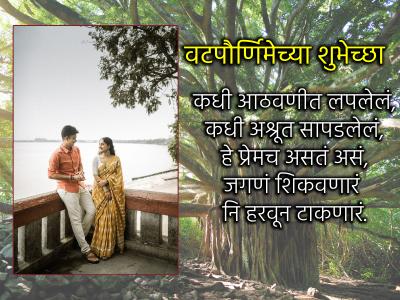 कधी आठवणीत लपलेलं, कधी अश्रूत सापडलेलं, हे प्रेमच असतं असं, जगणं शिकवणारं नि हरवून टाकणारं! साता जन्माच्या सोबतीसाठी वटपौर्णिमेच्या शुभेच्छा!