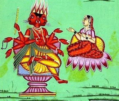 म्हणूनच ब्रह्मदेवांनी मूळ प्रकृतीचे आवाहन केले. ब्रह्म देवासमोर स्वाहा नामक देवी प्रकट झाली. होम-यज्ञातील मंत्रोच्चारानंतर देण्यात येणारी आहुती भस्म करावी; जेणेकरून ती आहुती देवांपर्यंत पोहोचेल, अशी सूचना ब्रह्मदेवांनी त्या देवीला केली.
