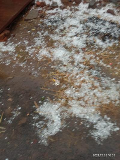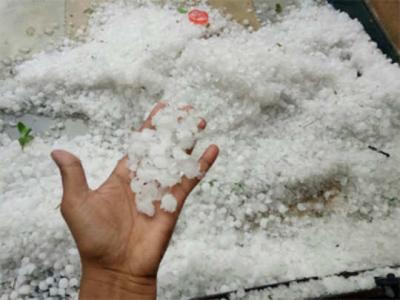 अवकाळी पावसाने झालेल्या गारपिटीमुळे शेतकरी चिंताग्रस्त बनला असून शेतात, घरासमोर आणि घरावरील पत्र्यांवरही गारा दिसून येत आहे