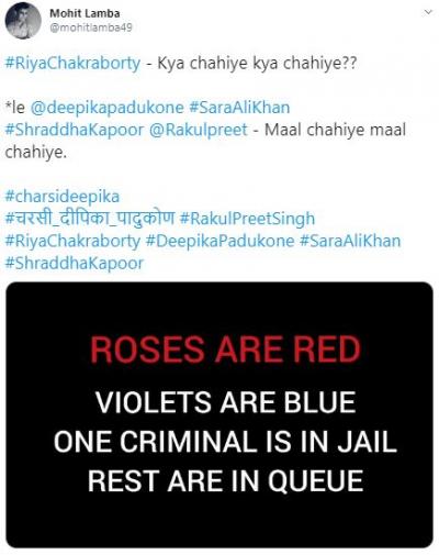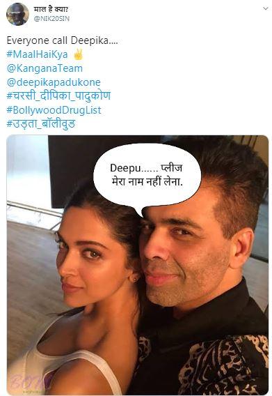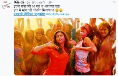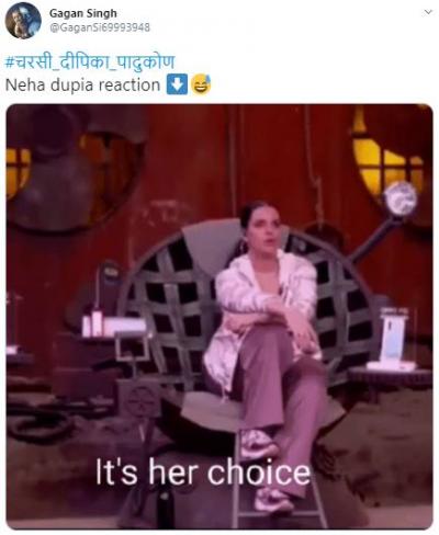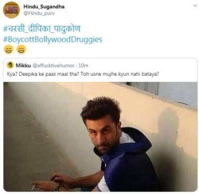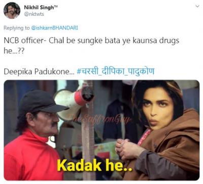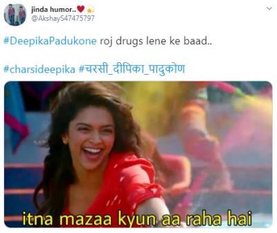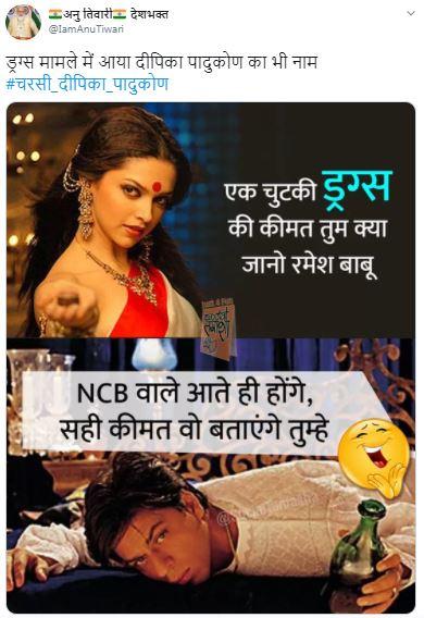ड्रग चॅटला खुलासा झाल्यावर दीपिका सोशल मीडिया यूजर्सच्या निशाण्यावर आली आणि ट्विरवर #चरसी दीपिका पादुकोन ट्रेन्ड होऊ लागला. यावर वेगवेगळ्या कमेंट् आणि तिच्यावर जोक्स तयार करण्यात आले आहेत. सोबतच तिच्या सिनेमातील डायलॉग घेऊन मीम्सही शेअर केले आहेत.