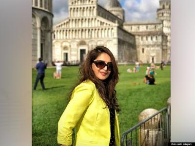 या फोटोंमध्ये माधुरीने पिवळ्या रंगाचा गाऊन परिधान केला आहे. माधुरीचे हे फोटोशूट चाहत्यांना आवडले आहे. (Photo Instagram)