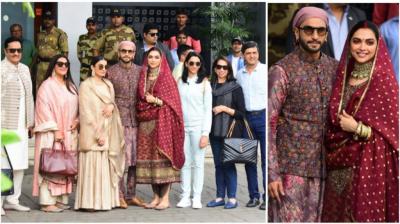 लग्नानंतर अशा प्रकारे सासरच्या मंडळींसह दीपिकाने मीडीयाच्या कॅमेर-यांना दिल्या होत्या पोज.