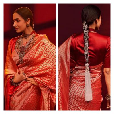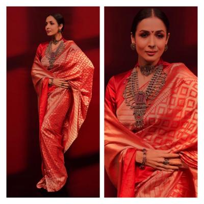 PHOTOS: नाकात नथ आणि लाल रंगाच्या बनारसी साडीत मलायका अरोरा दिसली लय भारी!