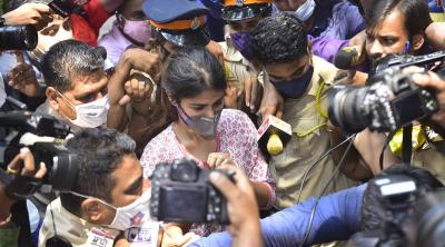रियासोबत तिचा भाऊ शौविक चक्रवर्तीही दिसला. दोघा बहिणभावांना एकत्र पाहून मीडियाने त्यांच्याभोवती गराडा घातला.