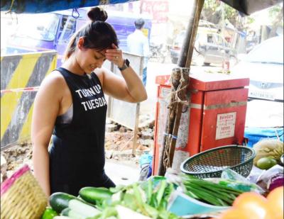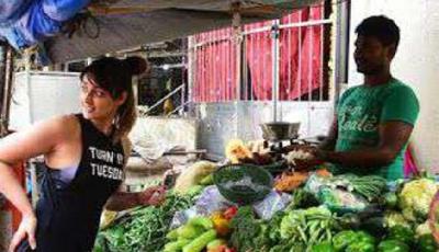 रुस्तम', 'रेड' अन् 'बर्फी' यासारख्या सिनेमात काम केलेली इलियाना मुंबईच्या रस्त्यावर भाज्या खरेदी करताना दिसली होती.