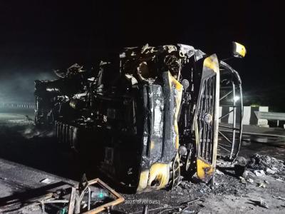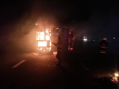 त्यानंतर काही मिनिटामध्ये पेट घेतल्यानंतर गाडीचा स्फोट होऊन ही खासगी प्रवाशी बस पेटली.