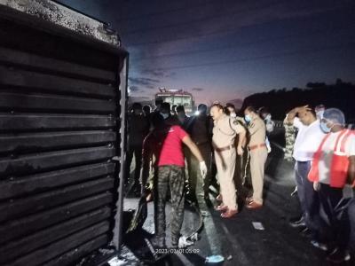 समृद्धी महामार्गावर खासगी प्रवाशी बसला अपघात होऊन बसने पेट घेतल्याने बसमधील २१ जणांचा मृत्यू झाला.