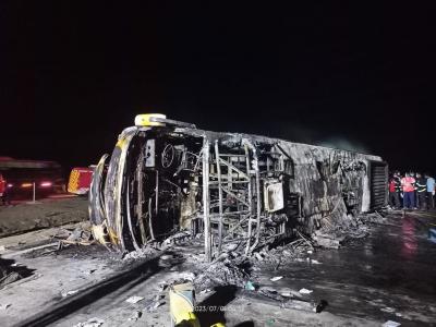 पेटत्या बसमधून प्रवाश्यांना बाहेर पडता न आल्याने यात ही मोठी जीवितहानी झाल्याची माहिती पोलिसांनी दिली.