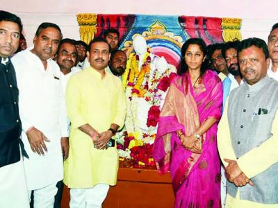 राष्ट्रमाता जिजाऊंना अभिवादन करताना खासदार सुप्रिया सुळे, माजी आरोग्यमंत्री डॉ. राजेंद्र शिंगणे, नगराध्यक्ष अँड. नाझेर काझी व अन्य.
