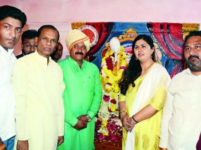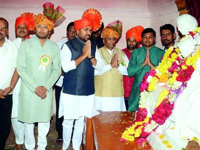 राष्ट्रमाता जिजाऊंना अभिवादन करताना पशुसंवर्धन मंत्री अर्जुनराव खोतकर, आमदार शशिकांत खेडेकर, शिवप्रसाद ठाकरे, संजय मेहेत्रे आदी.