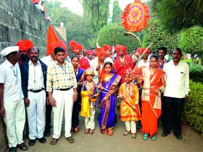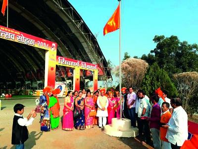 शिवधर्म पीठावर ध्वजारोहणाप्रसंगी उपस्थित आमदार शशिकांत खेडेकर व अन्य.